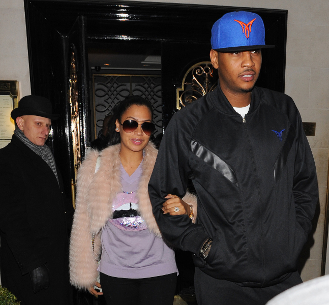 Carmelo Anthony and LaLa Vasquez leave Scotts restaurant in Mayfair Featuring: LaLa Vasquez Where: London, United Kingdom When: 16 Jan 2013 Credit: TFlash/WENN.com -