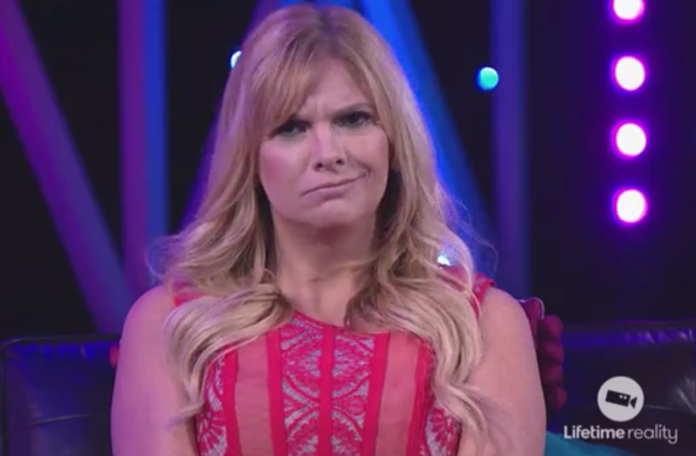 Um, are we watching someone unravel right in front of our eyes? The first three minutes of last night’s Dance Moms Reunion was akin to watching Britney Spears’ epic meltdown circa 2006, except there wasn’t any head-shaving…yet (at least). Abby Lee Miller arrives extremely late–and braless–as the mothers wait patiently on the stage with this year’s host, Jai Rodriquez. As a huge Queer Eye fan, I’m glad to see he’s still around! I notice that Phil Collins was wise enough not to get to close to this debacle! Abby stumbles on stage, hair half up in hot rollers, much she like starts her day at the studio. Abby complains about her bra, pulling it outside of her shirt to show the appalled audience, as Melissa Gisoni rushes to her rescue. Jai quickly cuts to a group routine which is already prepped and ready to go.