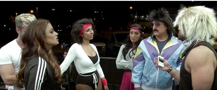 When Tara shows up in full leotard, a la Jane Fonda, GG admits that after she went baby shopping with Shervin, he told her that he did sleep with Tara and while GG agreed to cover it up, covering it up doesn’t extend to the Bravo cameras cuz she’s telling it all, folks! Shervin arrives shortly thereafter, sending Tara into an over-dramatic tailspin of whining and pretend leaving the party. When GG comes to talk to her, Tara cries that she wants to make sure GG has her back and Reza comes over to ask Tara why she said anything in the first place. Tara continues to ring her hands, desperate to get the ball rolling on her little show down with Shervin and he doesn’t shy away from it, coming over to ask what’s going on, like he doesn’t know. When Tara tries to let the cat out of the bag, Shervin remains calm and calls her crazy and delusional to her face. While it’s hard to take him seriously dressed in zebra pants and a blonde spiked wig, it’s equally hard to watch Tara doing a Jane Fonda workout of her own, but instead of doing crunches, she’s doing drama flails left and right. Whew, I need a water break! While Tara continues to sweat, Adam, Destiney, Mike and Asa watch from afar, with Adam explaining what’s going on and Asa commenting on how amazing the tacos are.
