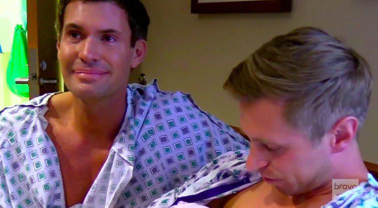 It’s the day Jeff Lewis and Gage Edward have been waiting for! Not to mention we diehard Flipping Out fans, who have traveled a long journey with Jeff and the gang since he was just a relatively nameless OCD dude on a little network called Bravo. Last night delivered – both metaphorically and literally – a turning point in Jeff and Gage’s lives: the birth of their daughter, Monroe. And if you haven’t seen this episode yet, I’d suggest at least taking a peek at the birthing scene. The look on Gage’s face as Monroe makes her entrance into the world is incredible, and the new fathers holding their baby for the first time is about as sweet as it gets.