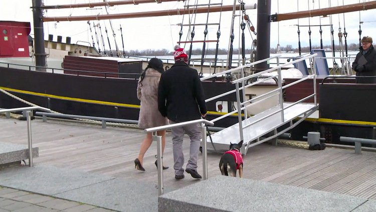 Since Dominic agreed to marry Mary in a quickie ceremony, she booked a minister ASAP to wed them on a depressing docked boat in Toronto. The dog will serve as witness. Dominic is petrified to go through with it, but much like his days in prison (where something seriously BAD must have happened to him ya’ll), he just follows orders and does a perp walk all the way to the boat that will seal his fate.
