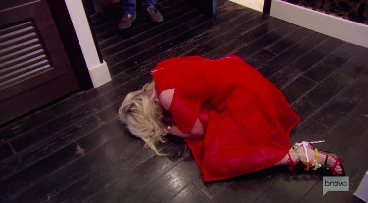 Finally, Ramona gets fed up with Sonja and comes over to infiltrate Do and Lu’s chill vibe. No one knows what to do with a problem like Sonja Tremont Morgan. Meat cleanse? Electroshock therapy? Exorcism? Maybe Luann can fix her? (Nope. She’s going to be busy fixing herself all too soon.) In any case, it’s a lost cause tonight so they just give up.