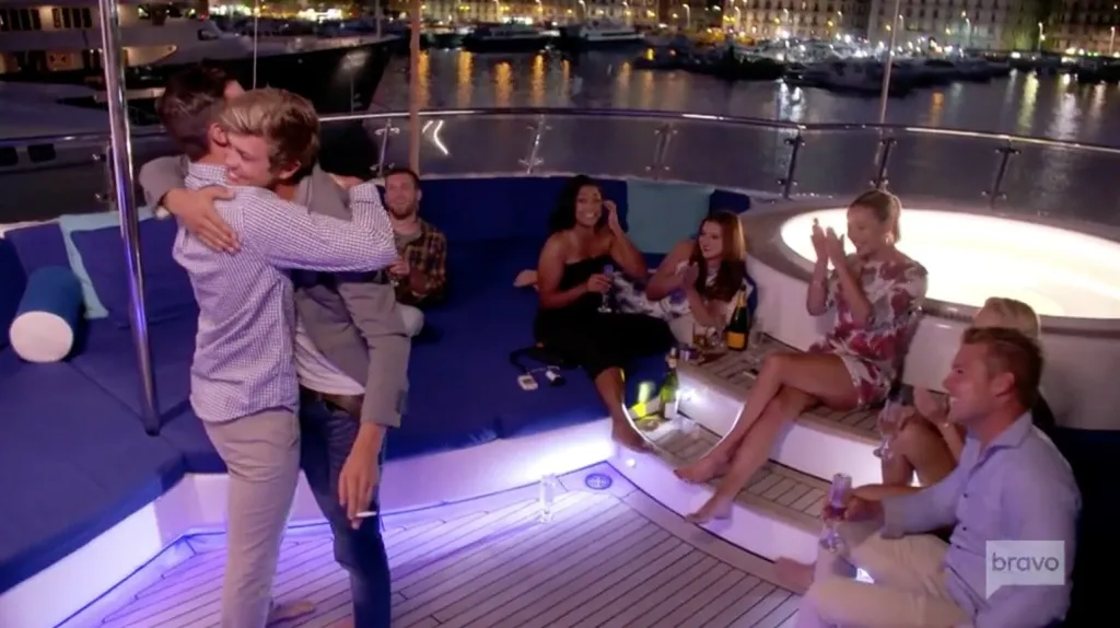 Colin Macy-O’Toole celebrates by attempting a backflip off the side of the boat. He first puts on his helmet (safety first!), then literally backFLOPS into the Mediterranean! I love this guy. I love him even more after he surprised the crew with a rap he wrote to commemorate their time together, and it is just so perfect in every way. Brooke is a fool for not seeing how this caterpillar could’ve become her butterfly, and instead choosing a hippo reject.