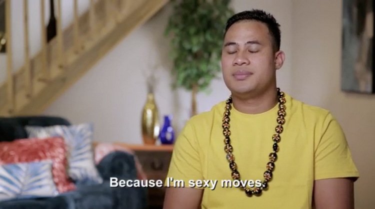 Kalani’s parents will be staying with them in Utah for the first two weeks, and her brother will live permanently with them. HUH? Methinks Kalani is in constant need of an official “handler” and Brother Kalani is next in line for the role. Asuelu just hopes Kalani can keep her hands off of him during her parents’ visit. Allegedly, she can’t get enough of Asuelu’s hot bod. “Because I’m sexy moves!” he says. Ahem, as witnessed at the airport.