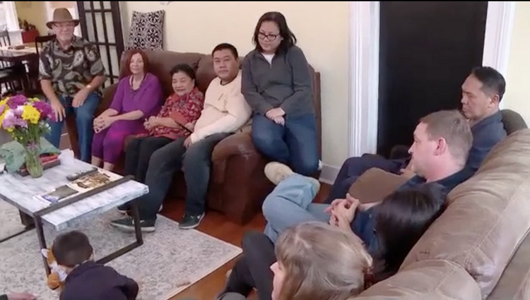 Once in Baraboo, Eric tells us he’s rented an apartment for Leida’s family: 1) because there is no room for them at his hideous pigsty, and 2) because he wants to keep them away from said pigsty AT ALL COSTS. Before taking Leida over to view the brutal nightmare that awaits her, Eric’s family (including his ex-wife) are awkwardly assembled at the rented apartment to welcome Leida’s family to the country. Oh lordt! The scene is just as painful as the following screen grab reveals…