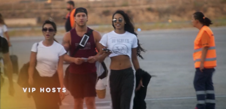 We start off with Lindsay and Panos sitting down to discuss their “ambassadors”. I am not even joking when I say that at first, I thought they were literally talking about ambassadors they were having as guests. Until the next scene showed a plane pulling up to offload beautiful people labeled “VIP hosts.”
