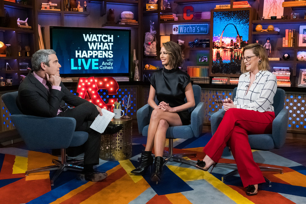 WATCH WHAT HAPPENS LIVE WITH ANDY COHEN -- Episode 16026 -- Pictured: (l-r) Andy Cohen, Kristen Doute, S.E. Cupp -- (Photo by: Charles Sykes/Bravo)