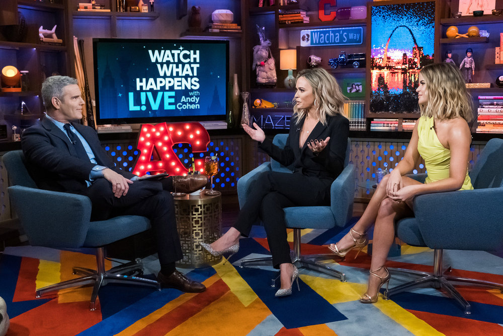 WATCH WHAT HAPPENS LIVE WITH ANDY COHEN -- Episode 16046 -- Pictured: (l-r) Andy Cohen, Teddi Mellencamp -- (Photo by: Charles Sykes/Bravo)