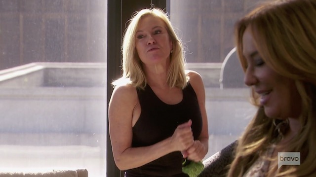 Anyway, Sonja who is on a This Is Proof I Was A Morgan Tour this episode shows up dressed for a fancy lunch, because she’s meeting some French friend for lunch who’s also Sonja’s daughter’s godmother. Basically not today hooker catcalls! Despite the peaceful surroundings Dorinda is annoyed by Sonja’s early departure. She’s even more annoyed when she learns Barbara Kavovit also has to leave early to be on the job site, but Dorinda is most annoyed with Ramona over what happened at the Angel Ball, which has gone all the way to Page Six with a lie from Ramona.