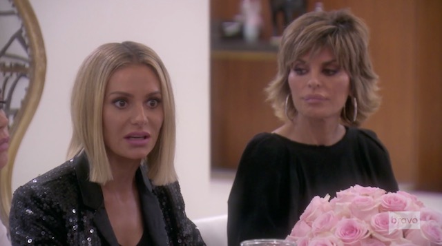 Erika sighs. Here we go again. Dorit and Kyle have gone from fighting together WITH LVP, to fighting with each other OVER LVP “Guys – Lisa Vanderpump is not at home worried about either one of you,” she snipes. Truth, Erika, Truth.