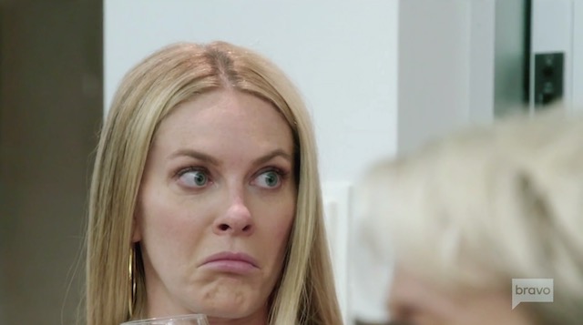 Upstairs, without Ramona breathing down her neck about decorum, Sonja proceeds to tip the Titos hard. She finds herself in a raging argument with Ramona’s friend Elyse Slaine. Elyse was once married to a very rich hedge fund guy and divorced well. She doesn’t consider herself a trophy wife because, um, … Well, it’s not really clear. Unlike Sonja who was clearly Mr. Morgan’s “accessory.” When Elyse issues this jab, Sonja loses it and starts screaming in her face that she wasn’t a trophy wife “because she didn’t shave her pussy.” She insists over and over that she was a “partner” in her marriage. Sure, keep telling yourself that, toaster oven girl! Sonja is so unhinged she tries to call Tinsley out for being a trophy wife, but Tinz married Topper, her high school sweetheart, and was his equal in breeding, background, and age. Not sure about assets.