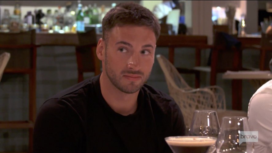 After a day of fun in the sun, the crew heads to dinner. And somehow, Rachel gets placed right next to James Hough and Elizabeth Frankini. Earlier in the day, the stew had been joking(?) with the deckhand about proposing. (Which is apparently hilarious when you’ve been hooking up for all of five minutes.) And now Rachel’s ready to give Liz a piece of her mind about the budding boat-mance. With James, you know, sitting a foot away.