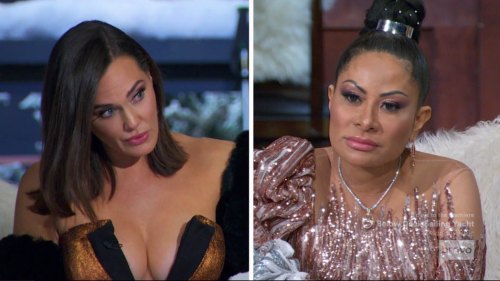 Eventually one of Coach Shah‘s famous pep talks calms Jen down. And suddenly it’s time to wrap things up! Andy goes around the room asking each of the ‘Wives one thing they learned from the season. The answer that stands out most is Meredith‘s, who basically uses her time to not-so-subtly drive home that she’s still angry at everyone. And rather than a traditional champagne or cocktail, Andy and the ‘Wives toast with meatball lollipops as fake snow falls on the reunion set! But don’t tell Mary it’s fake; she’s too busy trying to catch it on her tongue! Until next time!