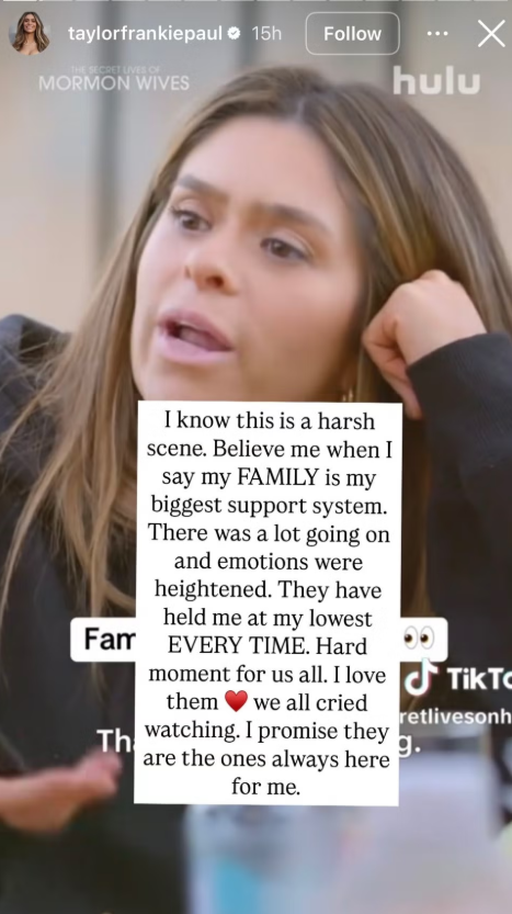 Taylor Frankie Paul defends her mom and family after Secret Lives of Mormon Wives Season 2