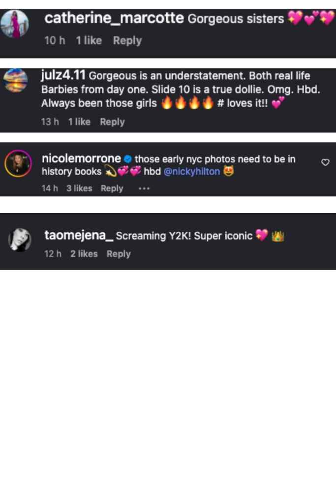 Reactions on Instagram poured in. One fan comments on Instagram, “Gorgeous sisters.” Another exclaimed, “Screaming Y2K! Super iconic.” A user also commented, “Gorgeous is an understatement… both real life Barbies from day one.”