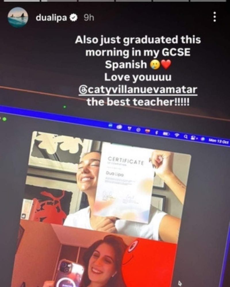 Dua Lipa recently celebrated a significant personal achievement unrelated to her music career. She passed her GCSE Spanish exam. The pop star proudly shared the news on her Instagram Stories, tagging her teacher and posting a collage featuring her holding the certificate. Fans quickly flooded social media with congratulations, praising her dedication beyond the stage.