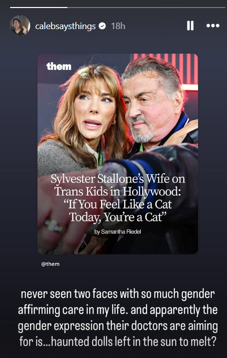 Caleb Hearon says Sylvester Stallone and his wife have had “so much gender affirming care”