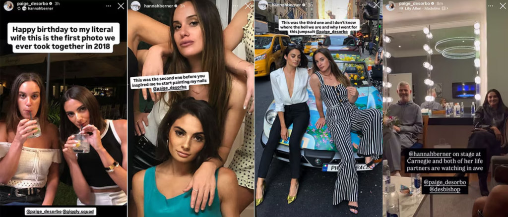 The photos included a throwback to 2018 and their very first photo together, sipping cocktails. Hannah tagged Paige as her “literal wife.” In the second photo, Hannah said that it was their second snap together before Paige inspired her to paint her nails (Hannah’s nails were noticeably bare in the shot).
