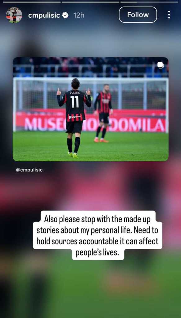 On Sunday, the USA Men’s National Team captain addressed the chatter in an Instagram Story. Christian Pulisic wrote, “Also please stop with the made up stories about my personal life. Need to hold sources accountable it can affect people’s lives.” The post went up on December 28, 2025, alongside a match photo, and it quickly circulated across fan accounts.