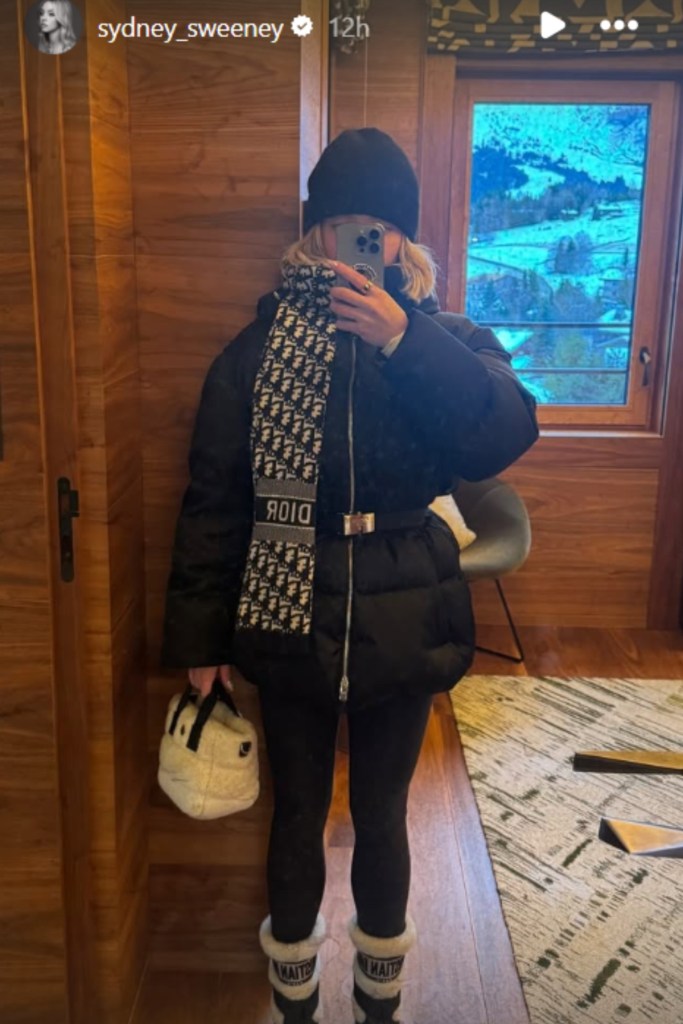 Sydney Sweeney beats the chill with Dior scarf over chic puffer jacket minidress