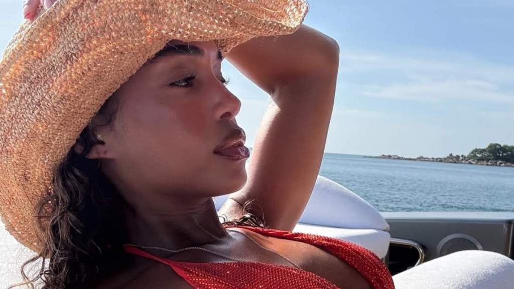 Another snap shows her soaking up the sun, wearing a slightly shimmery red bikini. Meanwhile, in another wet look, she truly looks like a sea goddess in a light brown bikini, which she styled with a wide-brimmed hat.