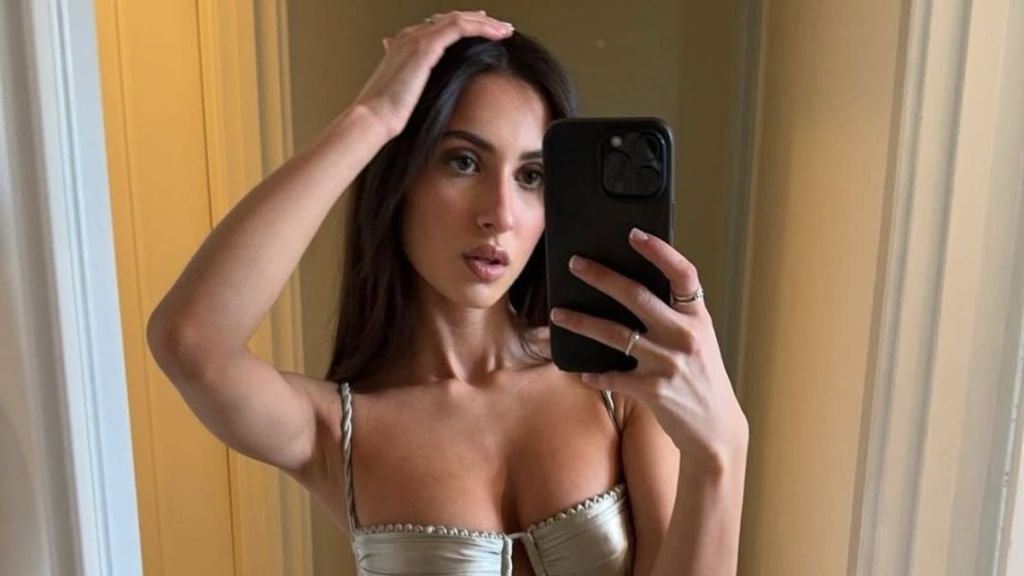 Bianca Censori’s sister, Angelina Censori, recently proved that she knows a thing or two about how to nail a bikini look. In her new Instagram Story, she posted a captivating new mirror selfie. The still showed the model and social media personality rocking a chic camo bikini set featuring white borders.