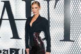 The 29-year-old wore a black lace mask, lending the outfit a dramatic and theatrical edge. She accessorized the vintage dress with bracelets and earrings for a more playful and alluring look. Her slicked-back hair keeps the focus on the silhouette, while her pose adds further to the overall look, giving a sneaky peek of her nude thong.