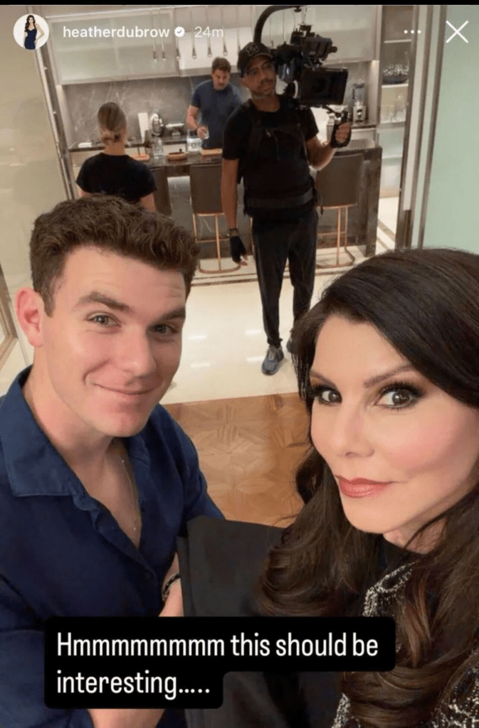 Heather’s son, Nick, has also been mentioned several times. Now, the RHOC star has added some fuel to the rumors by posting a selfie with Nick on what appears to be a set. There is a cameraman seen in the background, and both mother and son are giving the camera knowing smiles.