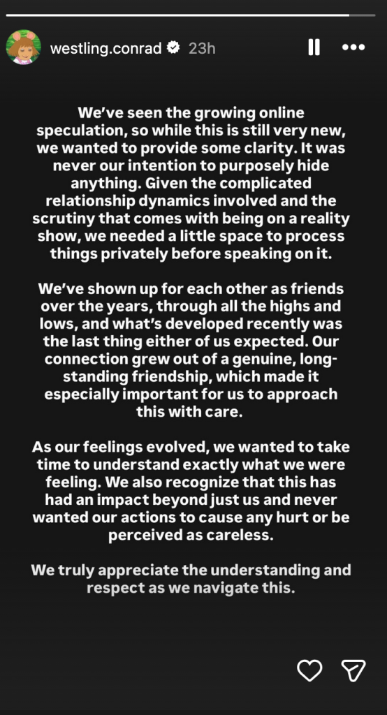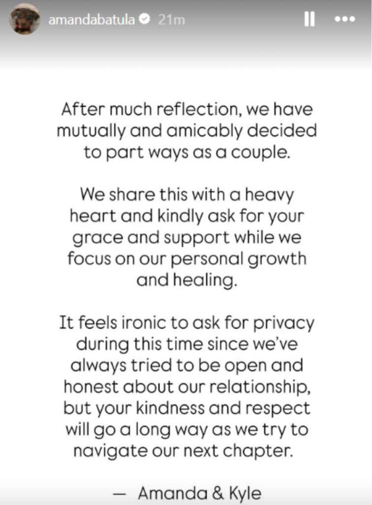 Facing mounting speculations from their fans and costars alike, yesterday, Amanda and Kyle finally admitted the truth: they are dating. They used the same statement on their Instagram Stories, basically saying that their feelings “evolved.” Also, they “recognize that this has had an impact beyond just us and never wanted our actions to cause any hurt or be perceived as careless.”