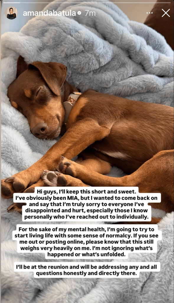 “For the sake of my mental health, I’m going to try to start living life with some sense of normalcy,” Amanda continued. “If you see me out or posting online, please know that this still weighs very heavily on me. I’m not ignoring what’s happened or what’s unfolded.”