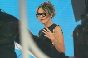 “The Devil Wears Prada 2” star wears a structured black velvet mini dress that fits her body well without looking too tight. Additionally, the fabric looks rich and soft, and it catches the light beautifully, making it a classic piece. A row of large gold buttons runs down the front, adding contrast and a touch of vintage style.