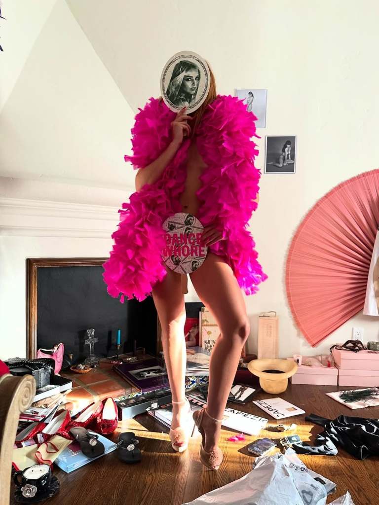 The “Diet Pepsi” hitmaker took to her Instagram to share a carousel of photos. She captioned the post, “Pink black red til I’m dead.” However, it was her picture in a boa that ended up stealing the limelight. Rae ditched her top and pants to wear a vibrant pink feathered boa like a cutout top. Moreover, she covered her face and lower part with two unique accessories. The 25-year-old also adds a dramatic finish to the look by opting for kitten heels.